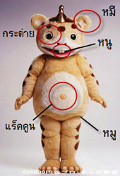 > หู มาจาก หมี > ตา มาจาก กระต่าย > ฟัน มาจาก หนู > พุง (กระเพาะ) มาจาก แร็ดคูน > หาง มาจาก หมู |